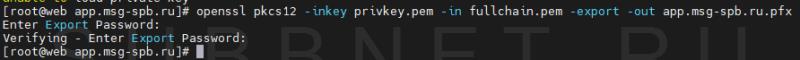 openssl pkcs12 -inkey privkey1.pem -in fullchain1.pem -export -out app.msg-spb.ru.pfx