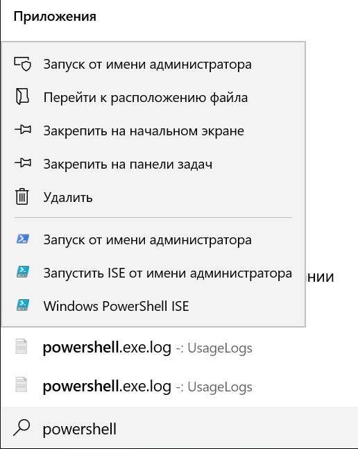 Powershell. - Щелкните правой кнопкой мыши Windows Powershell и выберите «Запуск от имени администратора».