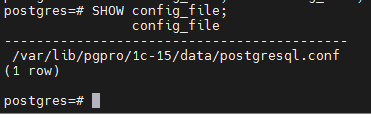 * нас интересует строчка /var/lib/pgpro/1c-15/data/postgresql.conf — это путь расположения нужного нам конфигурационного файла.