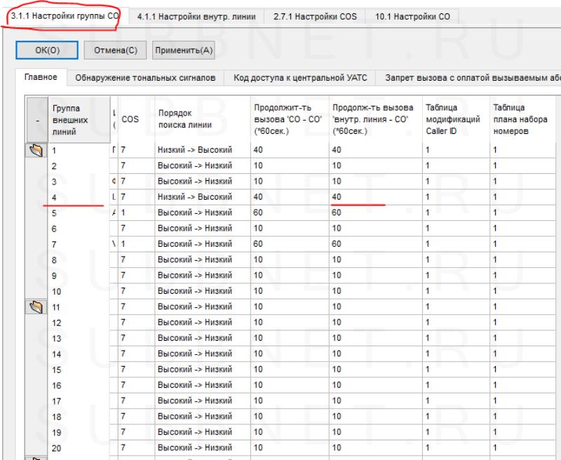 Так мы можем для разных внутренних и для разных СО поставить свою продолжительность вызова.