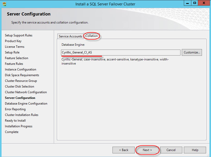 Еще один важный этап – выбор порядка сортировки (Collation). После инсталляции изменить крайне проблематично: