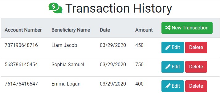 Чтобы продемонстрировать операции CRUD — вставка, обновление, удаление и извлечение, проект будет иметь дело с деталями обычной банковской транзакции. Репозиторий GitHub для этого демонстрационного проекта: https://bit.ly/33KTJAu .