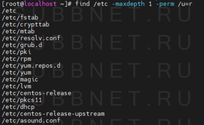 Поиск файлов доступных владельцу только для чтения только в каталоге /etc: