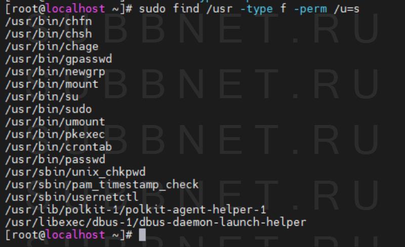 find . -type f -perm 0664Права также можно задавать буквами для u (user) g (group) и o (other). Например, для того чтобы найти все файлы с установленным флагом Suid в каталоге /usr выполните: