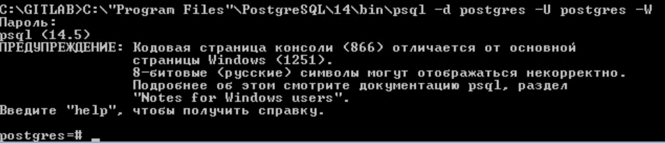 C:\"Program Files"\PostgreSQL\14\bin\psql -d postgres -U postgres -W