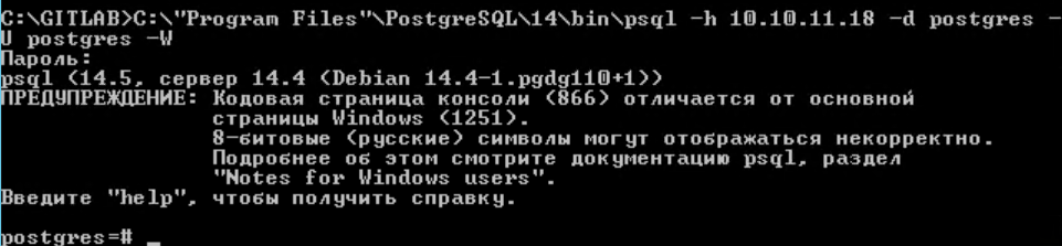 C:\"Program Files"\PostgreSQL\14\bin\psql -h 10.10.11.18 -d postgres -U postgres -W