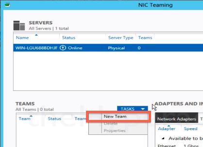 Get-NetLbfoTeamName : team0 Members : {Ethernet1, Ethernet0} TeamNics : team0 TeamingMode : SwitchIndependent LoadBalancingAlgorithm : TransportPorts Status : Up