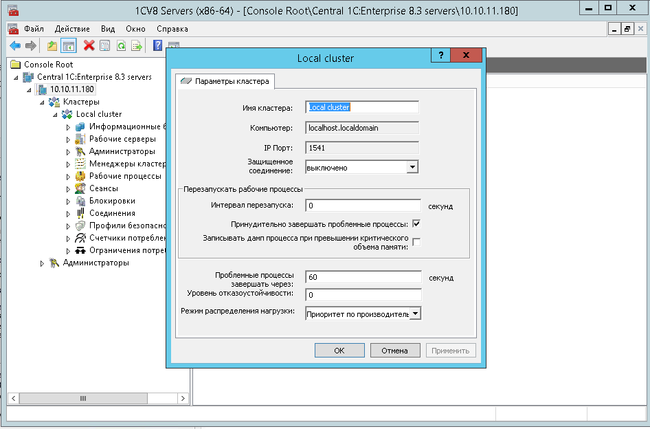 Также необходимо прописать на машине, на которой будут установлены платформа и консоль управления сервером 1С в файле hosts (для Windows это C:\Windows\System32\Drivers\etc\hosts) адрес сервера 1С:Предприятие.