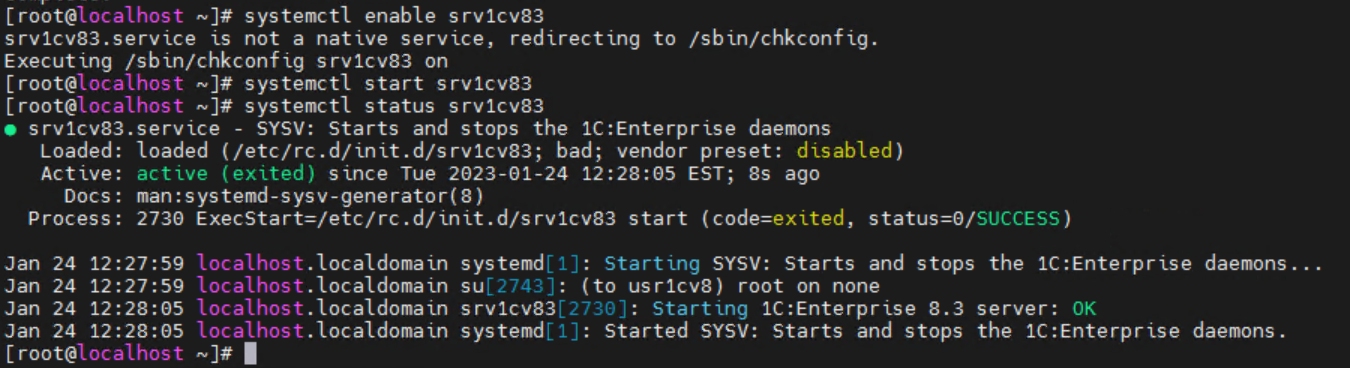 Failed at step EXEC spawning /etc/rc.d/init.d/srv1cv83: Exec format error