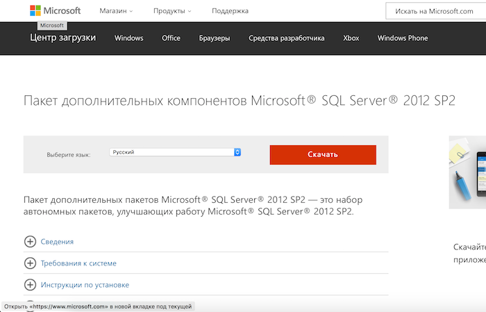 Ссылка на скачивание дополнительных компонентов — https://www.microsoft.com/ru-RU/download/