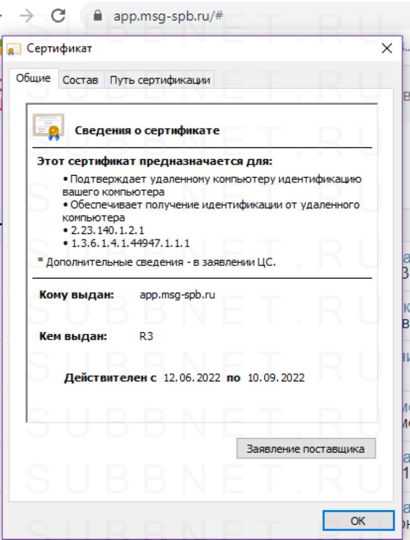 Выбираем сертификат.