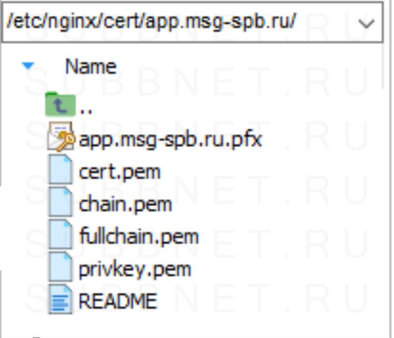Команда отработает очень быстро и в текущем каталоге появится файл app.msg-spb.ru.pfx.