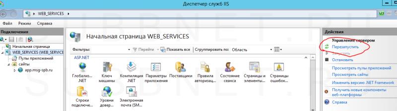 Перезапускаем сервер IIS.